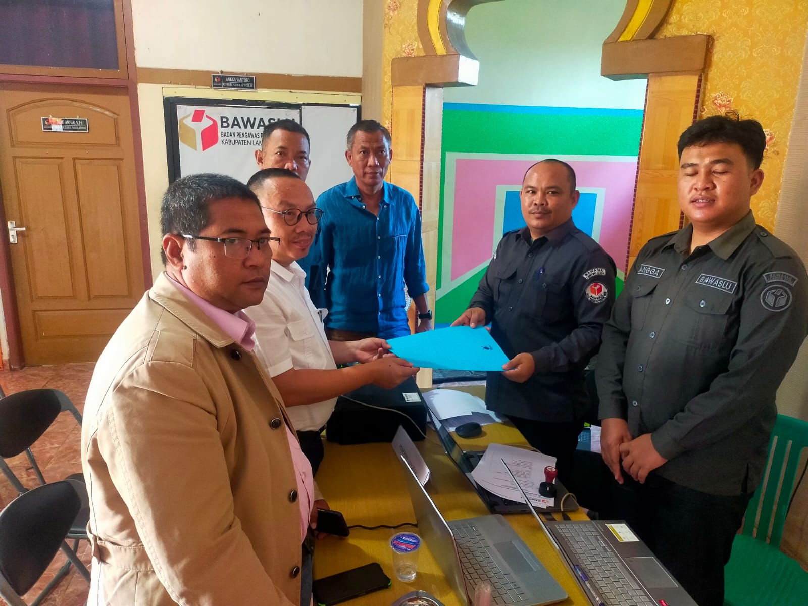 Setelah tiba di Bawaslu, tim hukum yang terdiri dari Dr.Suwardi, S.H., M.H., CM. CPLE, Chandra Guna, SH didampingi oleh Suryanto dan Heri, diterima oleh petugas pelaporan dengan menyerahkan sejumlah barang bukti (BB).