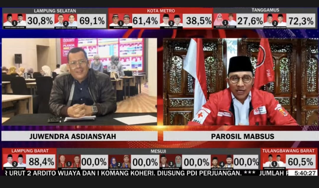 Lampung Barat – Pasangan Calon Bupati dan Wakil Bupati Lampung Barat (Lambat) Nomor Urut 2, Parosil Mabsus – Mad Hasnurin (PM-MH), unggul telak berdasarkan hasil sementara quick count yang dilakukan oleh Rakata Analytics and Advisory. Quick count ini memiliki tingkat kepercayaan 99 persen.