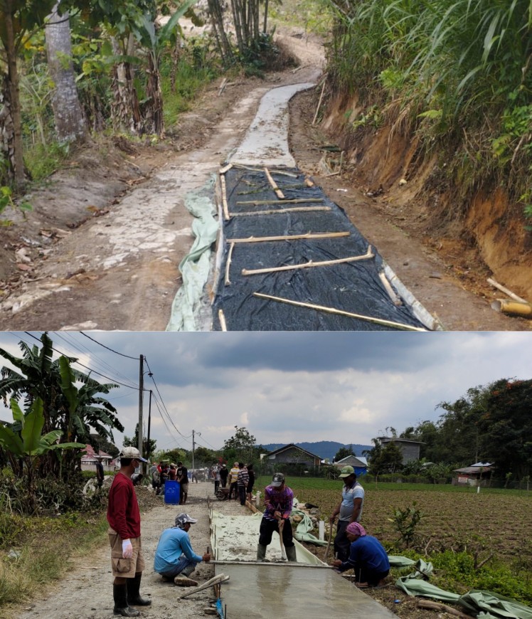 “Perbaikan jalan tersebut merupakan inisiatif dari warga, karena kondisinya memang sudah memprihatinkan dan sulit untuk dilintasi. Partisipasi warga mulai dari material alam batu dan pasir serta semen,” ujar Pranjat.