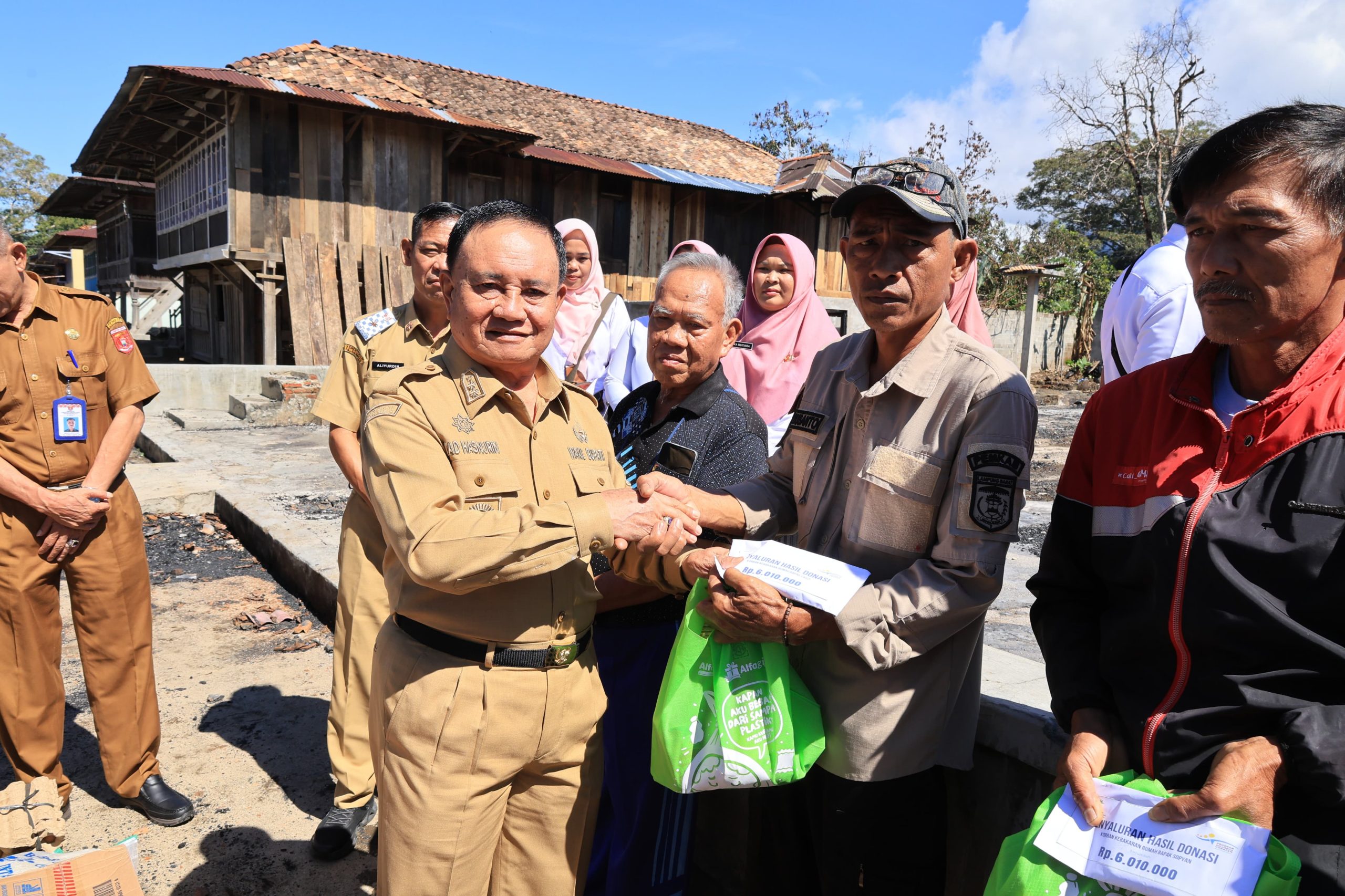 Dalam kesempatan itu, Wakil Bupati Lampung Barat menyerahkan bantuan berupa paket sembako, selimut, kasur, peralatan dapur, dan uang tunai untuk meringankan beban keluarga. Bantuan berasal dari pendamping Program Keluarga Harapan (PKH).