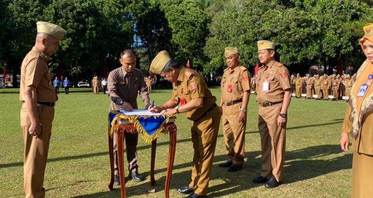 Lampung Barat- Penjabat (Pj) Sekretaris Daerah (Sekda) Drs. Ismet Inoni menandatangani berita